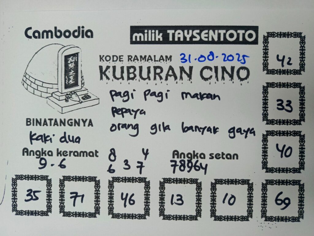 Syair Kuburan Cino Cambodia Hari Ini Minggu, 31 Agustus 2025