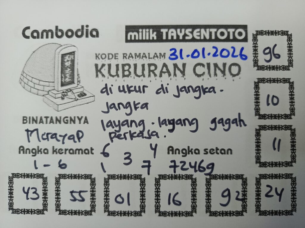SYAIR TAYSEN CAMBODIA– Selamat datang di Situs Prediksi Togel Jitu dan Terpercaya. Hari ini kita akan mengulas Syair Togel Cambodia 31 Januari 2026. Syair Cambodia ini semata-mata hanya dibuat untuk membantu mempermudah para pemain toto gelap online dalam menebak secara tepat Angka Keluaran Cambodia.