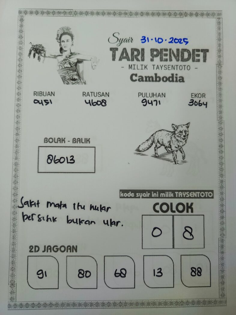 Syair Tari Pendet Cambodia Hari Ini Jumat, 31 Oktober 2025