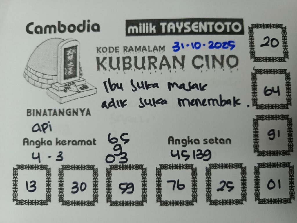 Syair Kuburan Cino Cambodia Hari Ini Jumat, 31 Oktober 2025