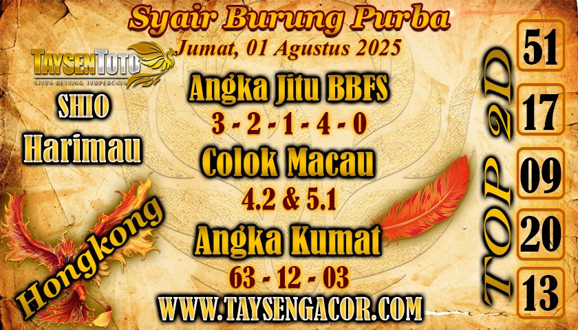 Syair Burung Purba HK Hari Jumat, 01 Agustus 2025