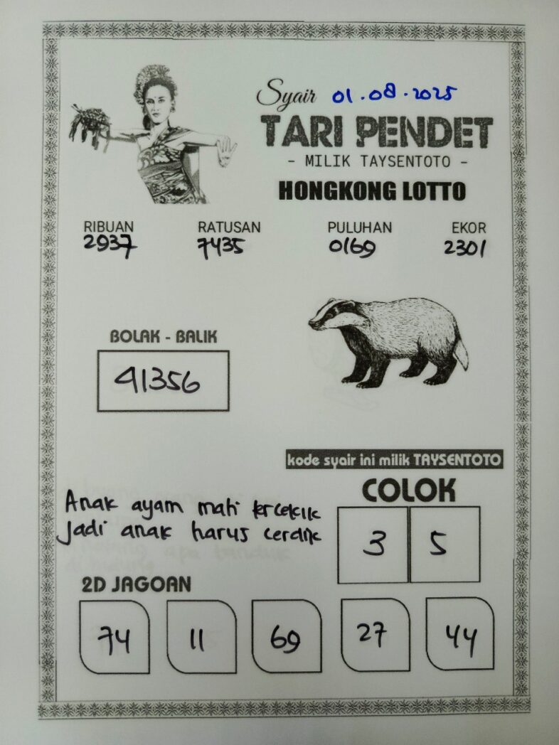 Syair Tari Pendet HK Hari Jumat, 01 Agustus Juli 2025