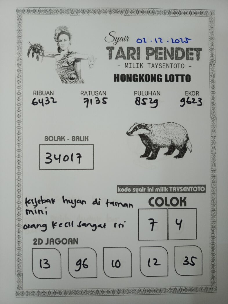 Syair Tari Pendet HK Hari Selasa, 02 Desember 2025