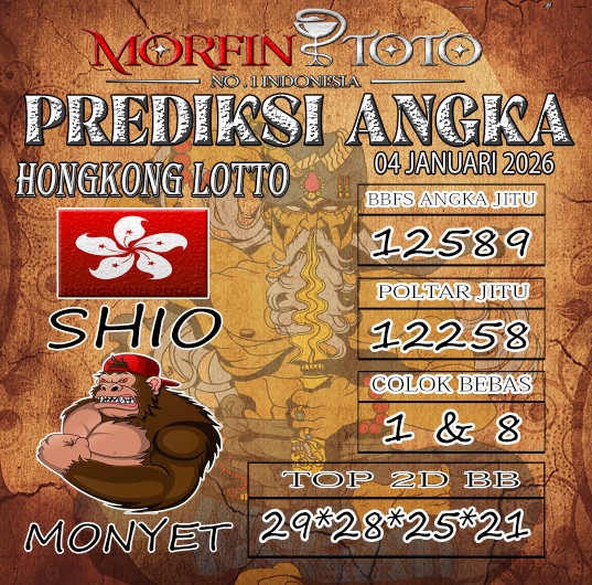 Syair Rintihan Lutung Hongkong Lotto Hari ini Minggu, 04 Januari 2026