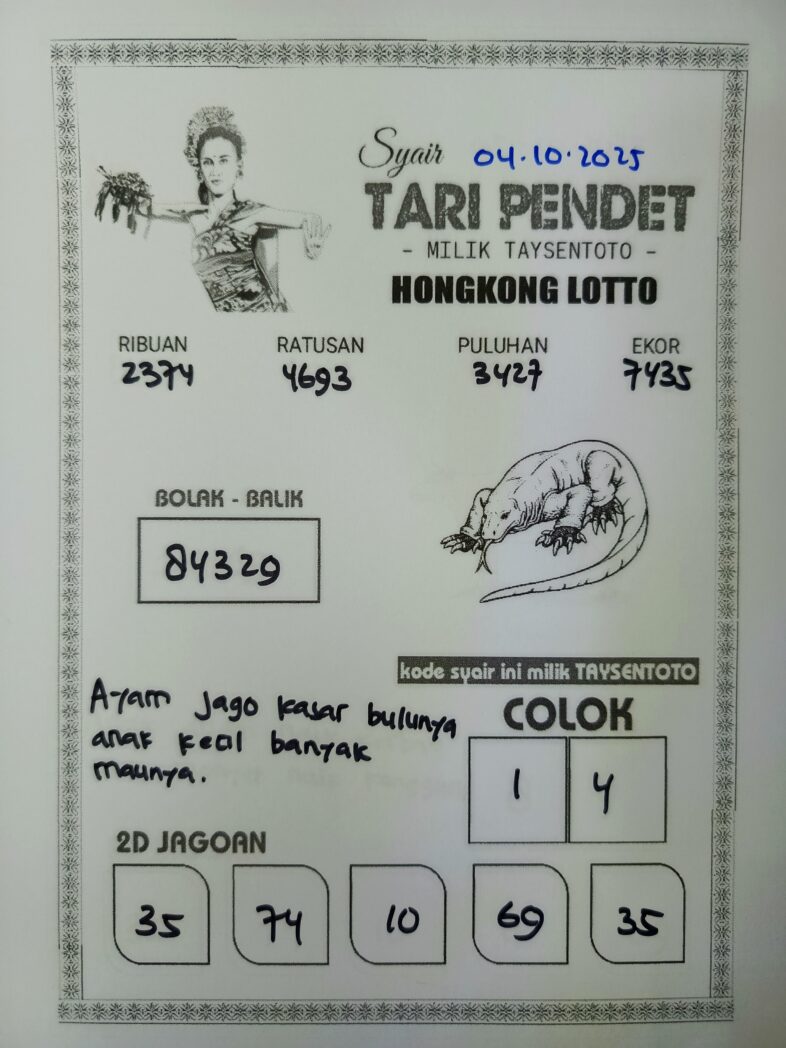Syair Tari Pendet HK Hari Sabtu, 04 Oktober 2025
