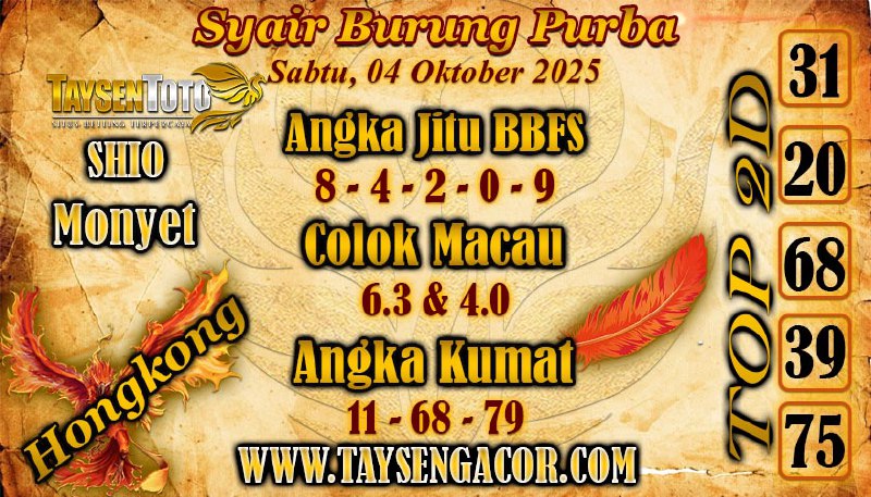 Syair Burung Purba HK Hari Sabtu, 04 Oktober 2025