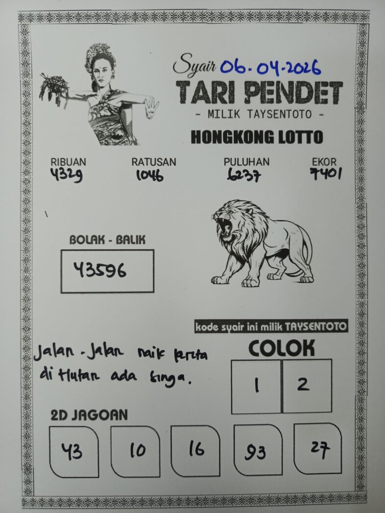 Syair Tari Pendet HK Hari Senin, 06 April 2026