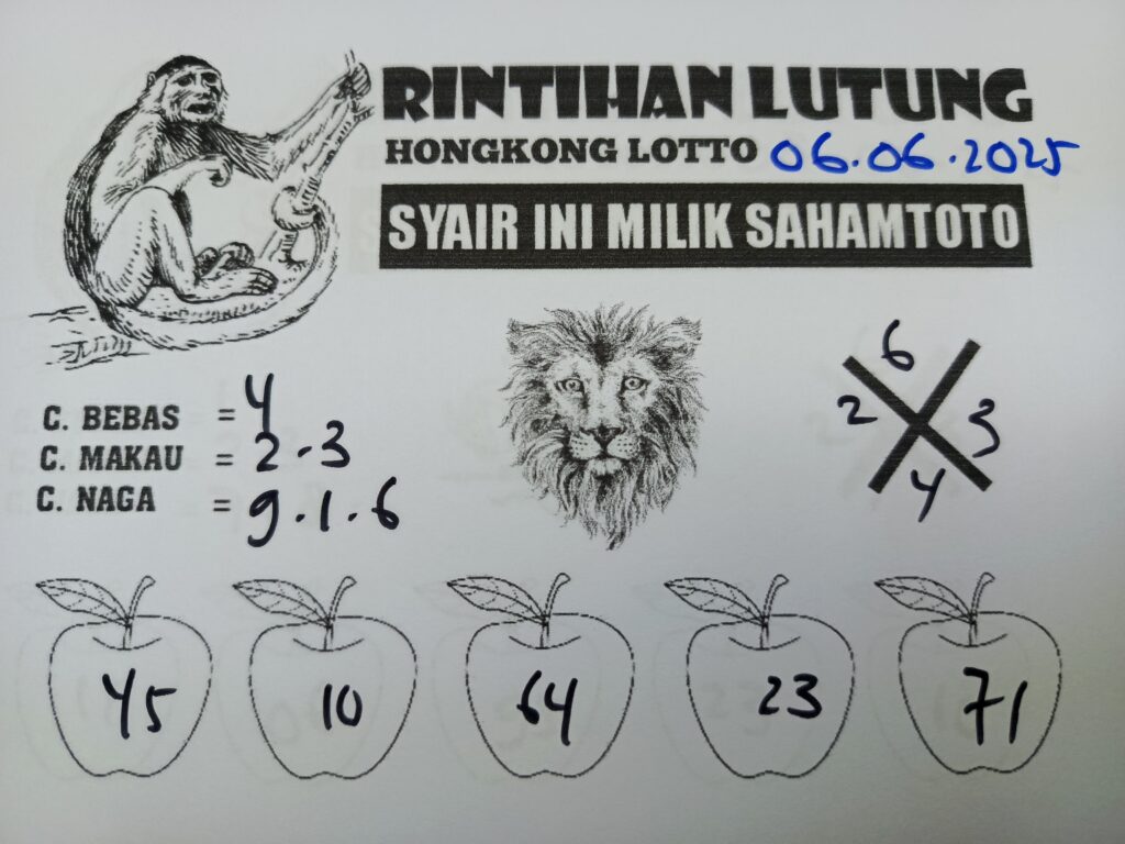 Syair Rintihan Lutung HONGKONG LOTTO Hari ini Jumat 06Juni 2025