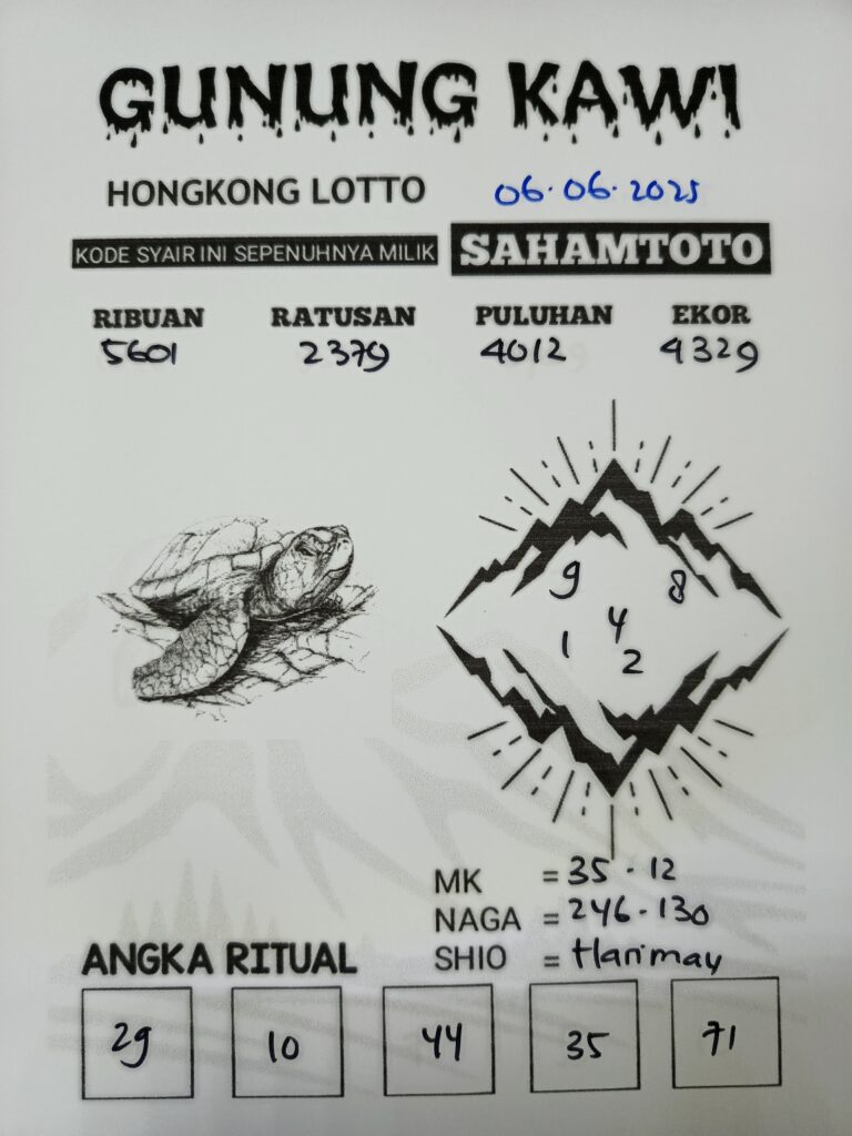 Syair Gunung Kawi HONGKONG LOTTO Hari ini Jumat 06Juni 2025