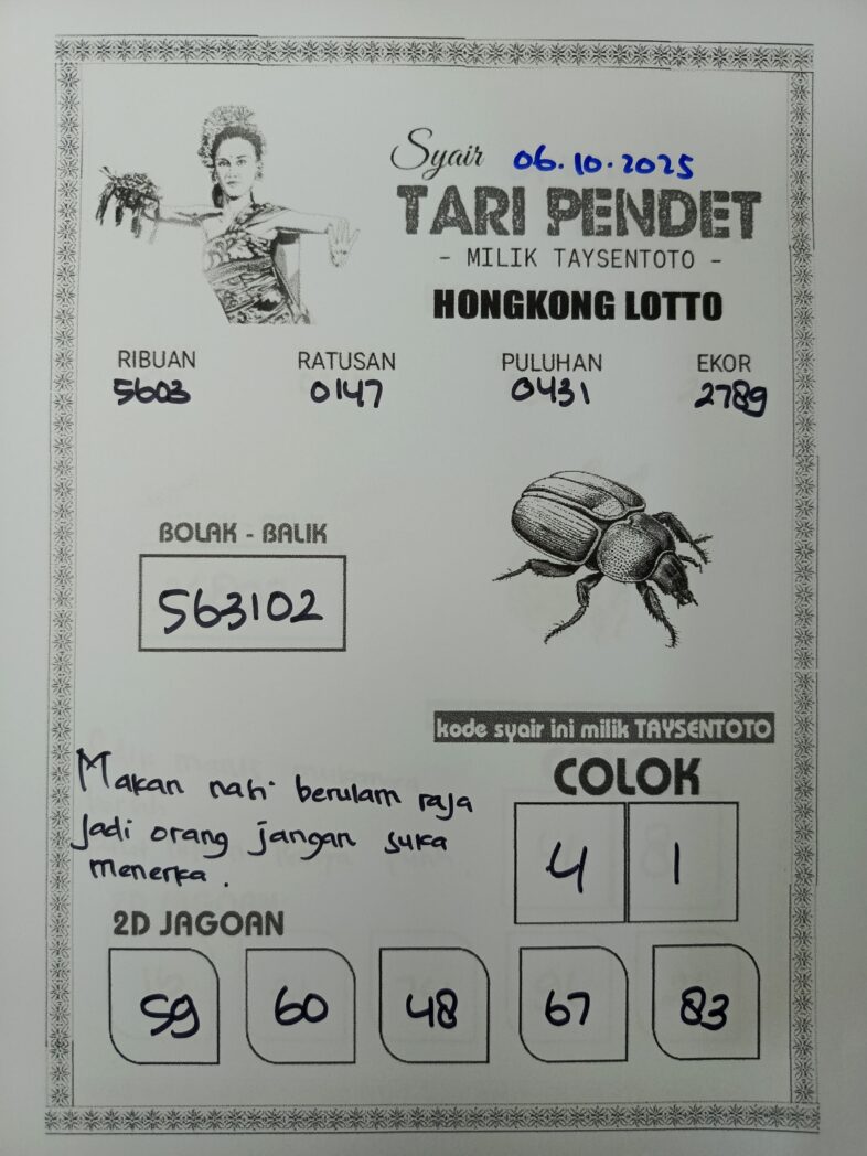 Syair Tari Pendet HK Hari Senin, 06 Oktober 2025