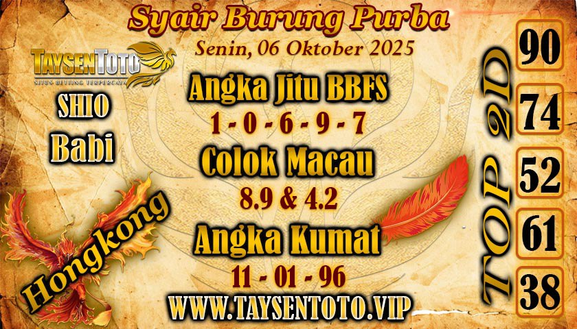 Syair Burung Purba HK Hari Senin, 06 Oktober 2025