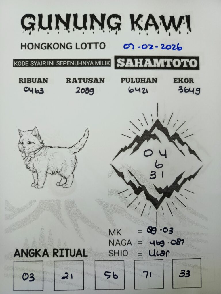 Syair Gunung Kawi HONGKONG LOTTO Hari ini 07 Februari 2026