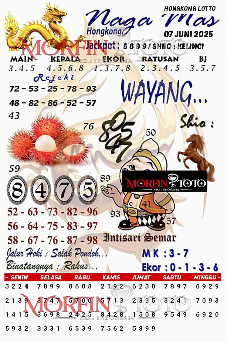 SYAIR TOGEL NAGA MAS HONGKONG LOTTO 07 JUNI 2025