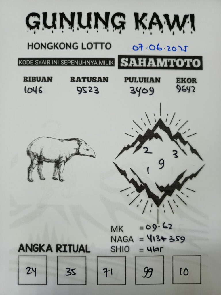 Syair Gunung Kawi HONGKONG LOTTO Hari ini Sabtu 07 Juni 2025