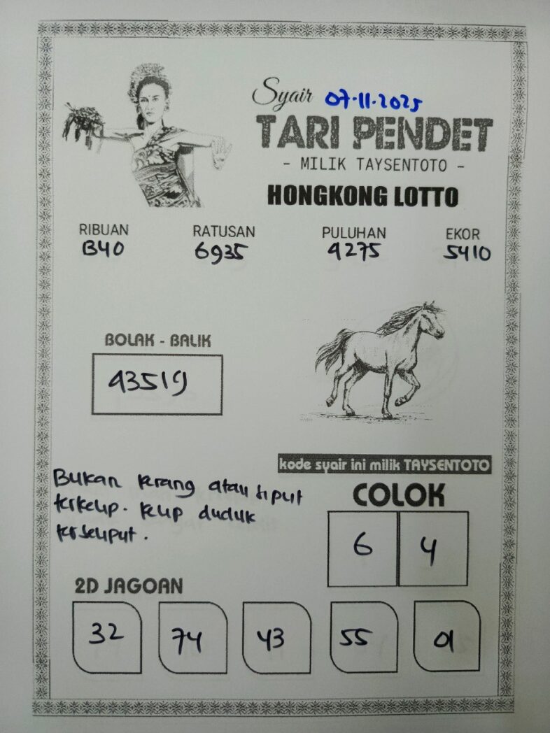Syair Tari Pendet HK Hari Jumat, 07 November 2025