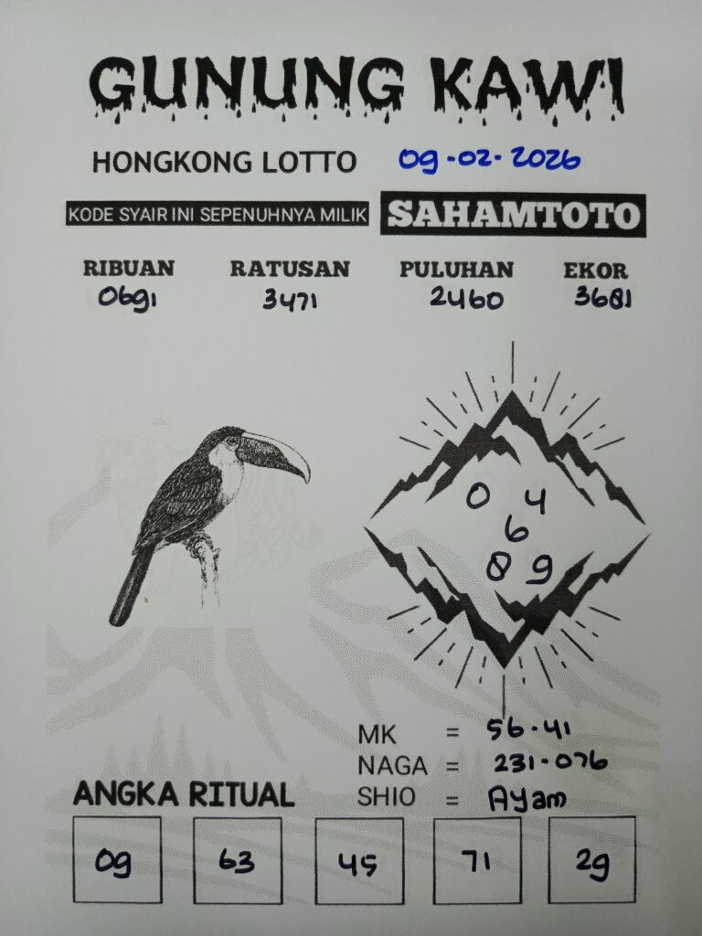 Syair Gunung Kawi HONGKONG LOTTO Hari ini 09 Februari 2026
