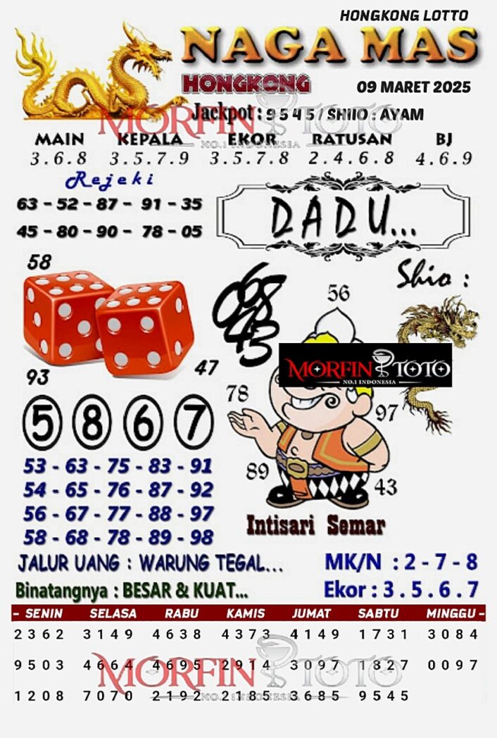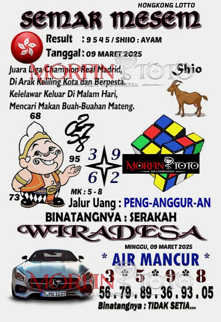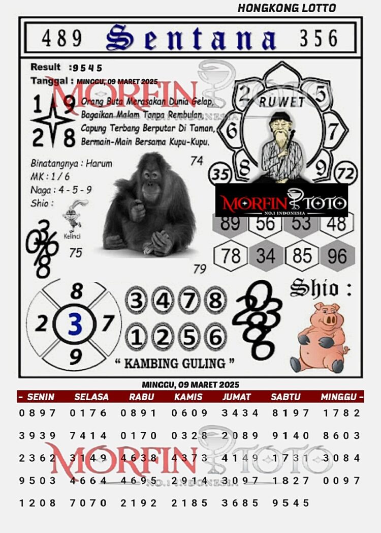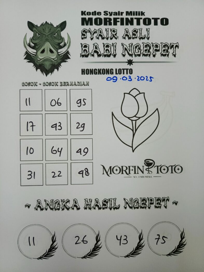 Syair Prediksi Angka Hongkong lotto hari ini Minggu, 09 Maret 2025