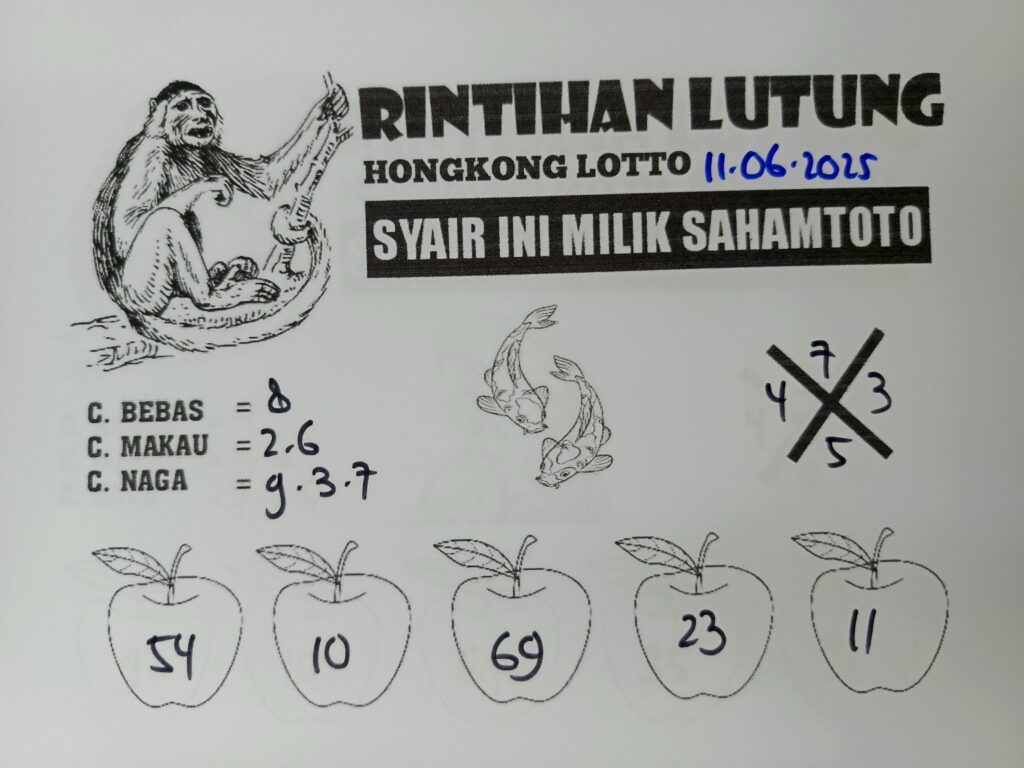 Syair Rintihan Lutung HONGKONG LOTTO Hari ini rabu 11 Juni 2025