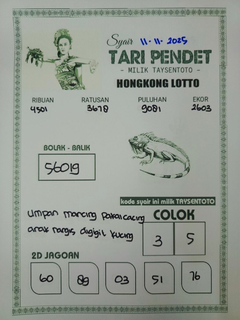 Syair Tari Pendet HK Hari Selasa, 11 November 2025