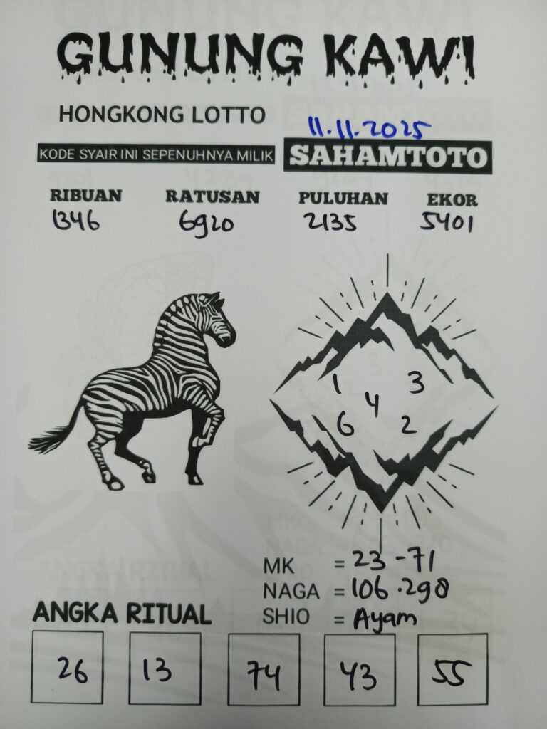 Syair Gunung Kawi HONGKONG LOTTO Hari ini11 November 2025