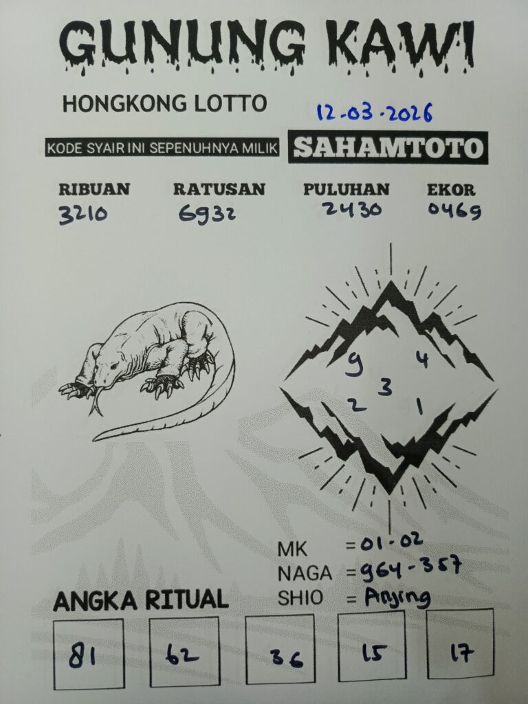 Syair Gunung Kawi HONGKONG LOTTO Hari ini kamis 12 MARET 2026