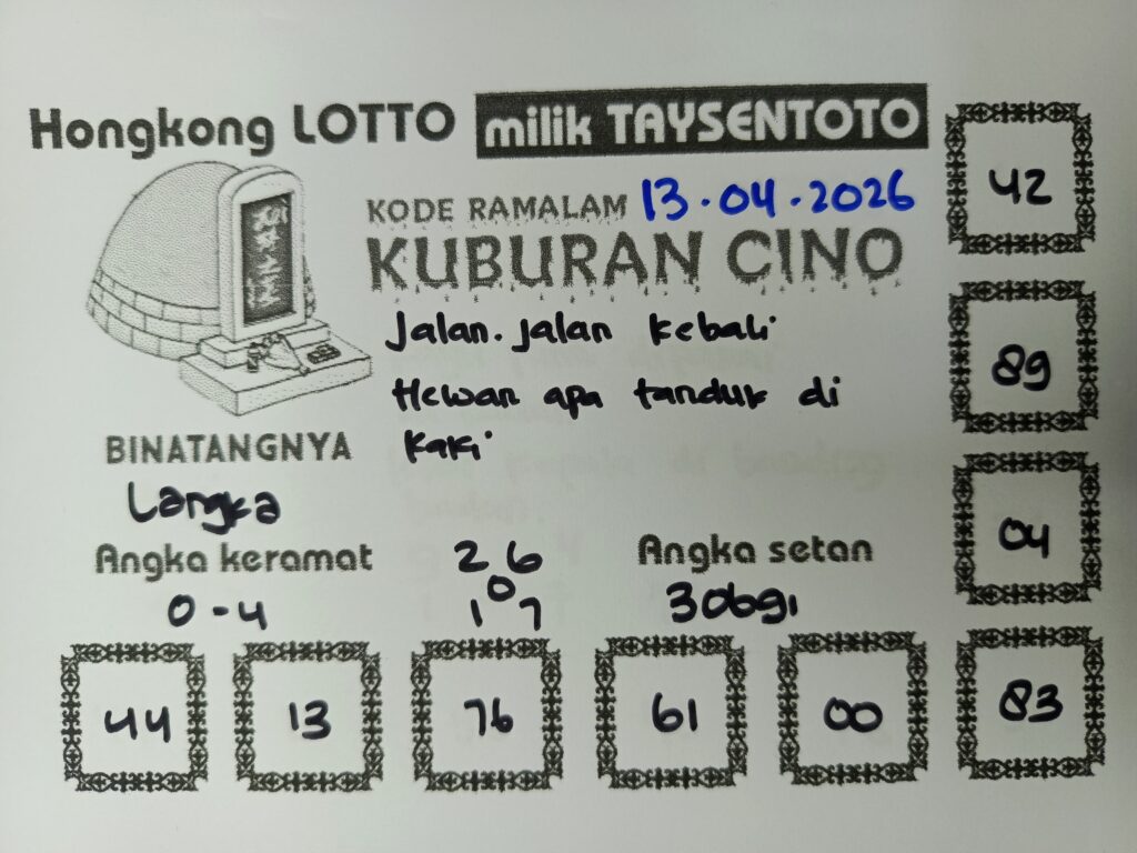 Syair Kuburan Cino HK Hari Senin, 13 April 2026