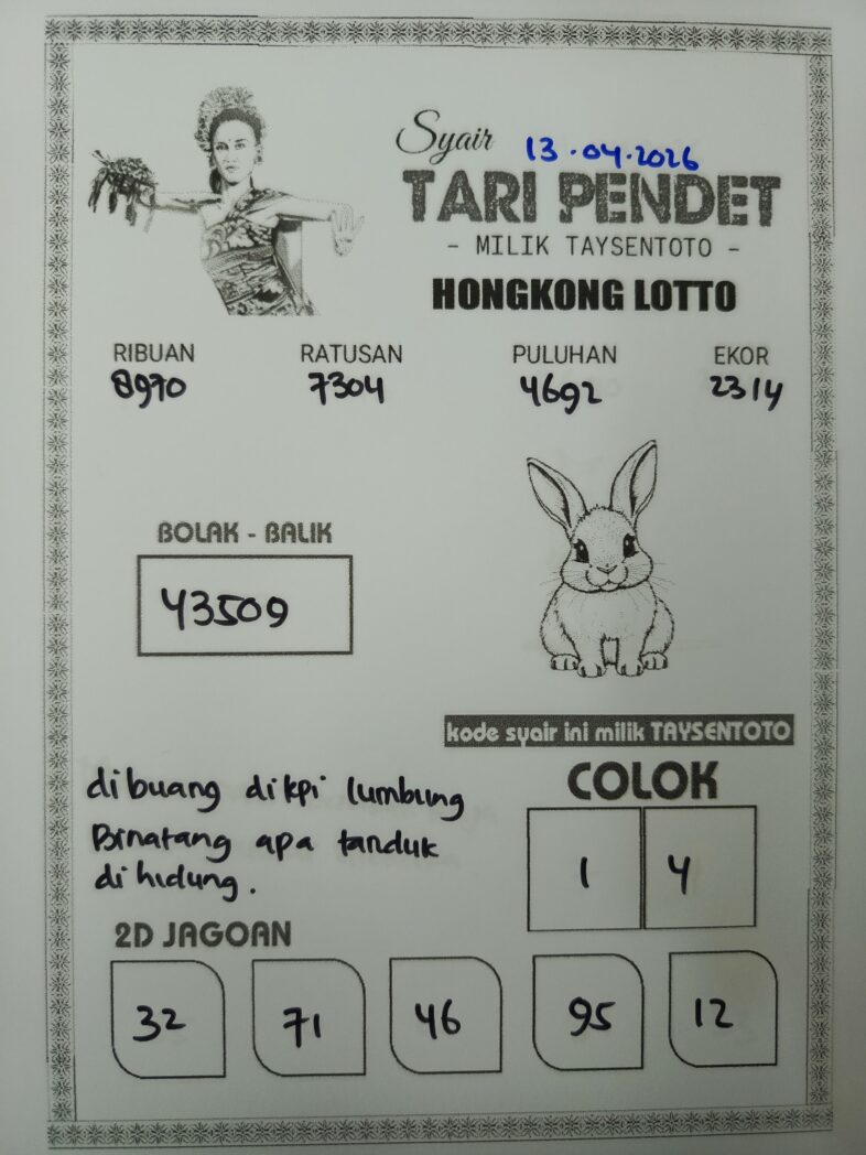 Syair Tari Pendet HK Hari Senin, 13 April 2026