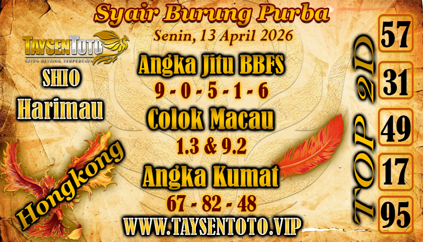 Syair Burung Purba Hongkong Hari Senin, 13 April 2026