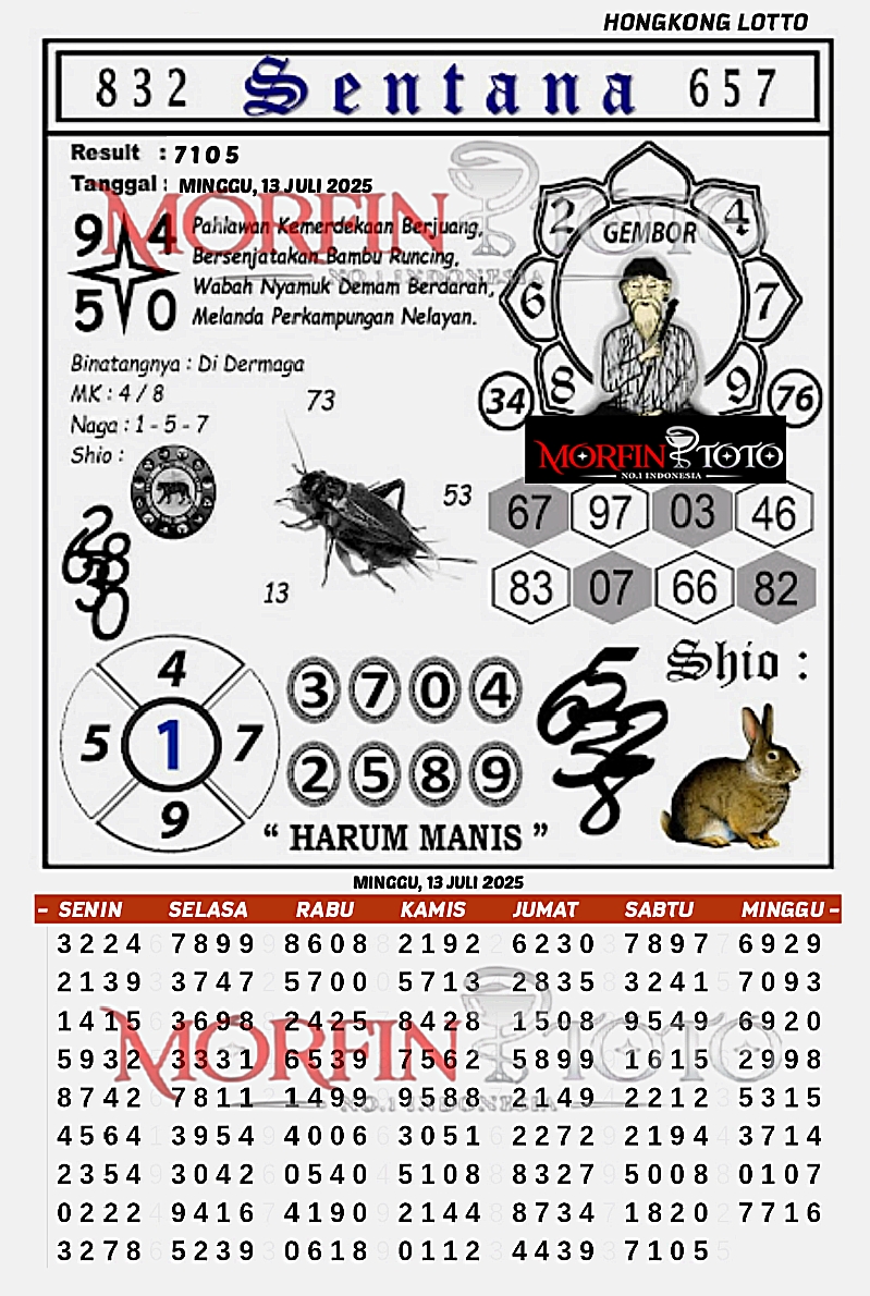 SYAIR TOGEL SENTANA HONGKONG LOTTO 13 JULI 2025