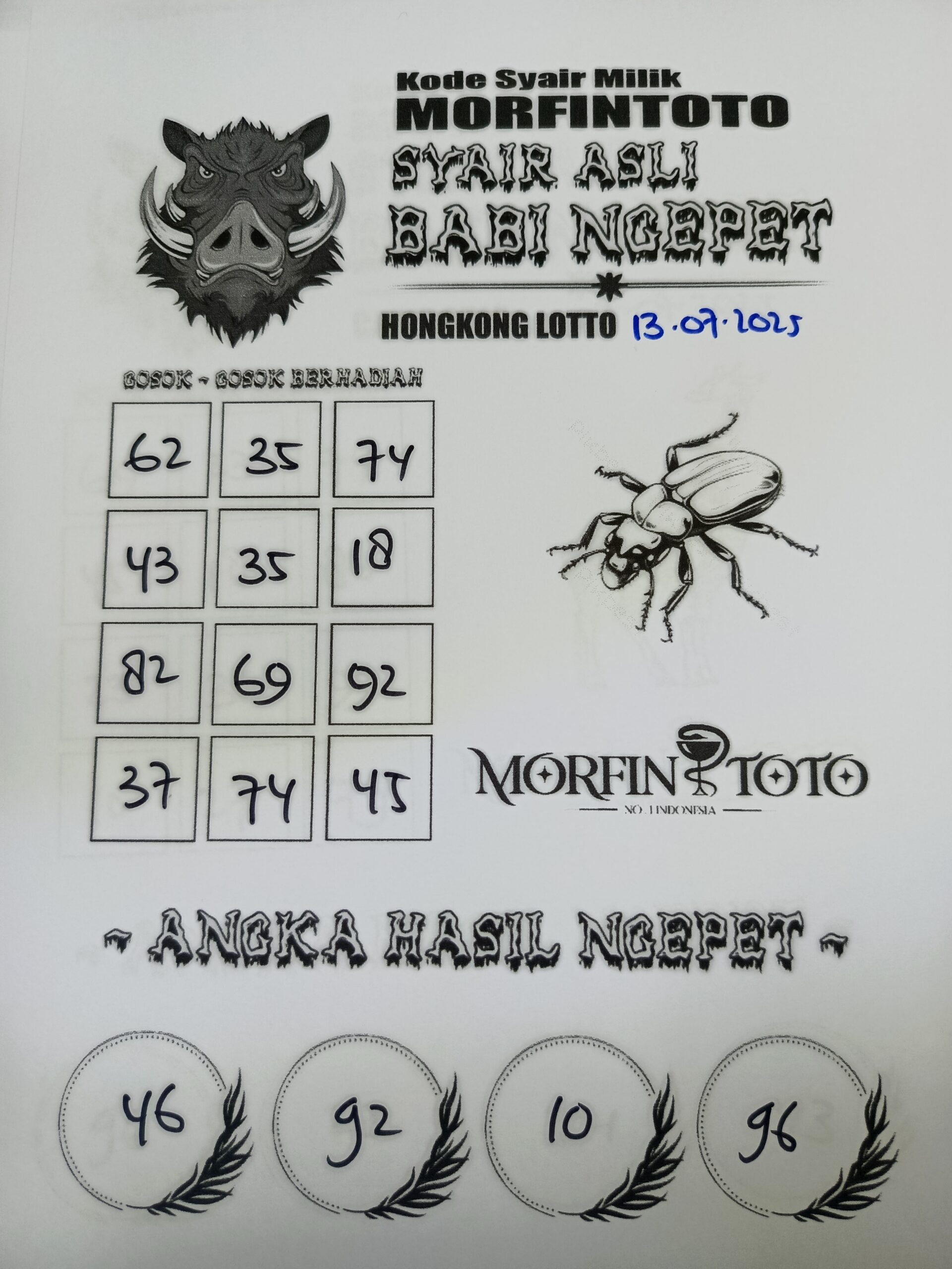 SYAIR TOGEL BABI NGEPET HONGKONG LOTTO 13 JULI 2025