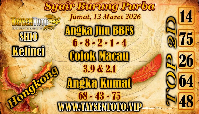 SYAIR TAYSEN HK – Selamat datang di Situs Prediksi Togel Jitu dan Terpercaya. Hari ini kita akan mengulas Syair Togel HK 13 Maret 2026. Syair HK ini semata-mata hanya dibuat untuk membantu mempermudah para pemain togel online dalam menebak secara tepat Angka Keluaran Hongkong.