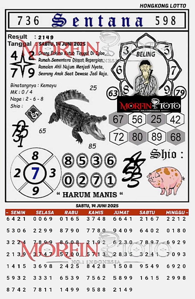 SYAIR TOGEL SENTANA  HONGKONG LOTTO   14 JUNI 2025
