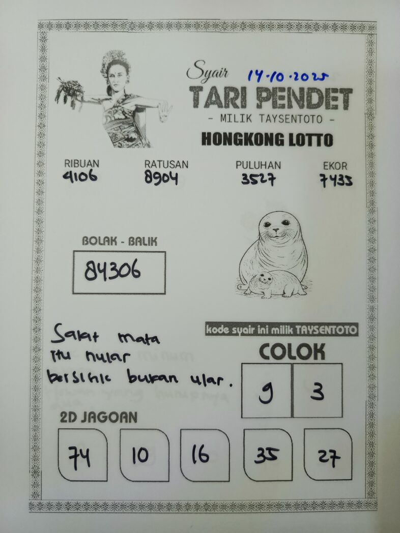 Syair Tari Pendet HK Hari Selasa, 14 Oktober 2025