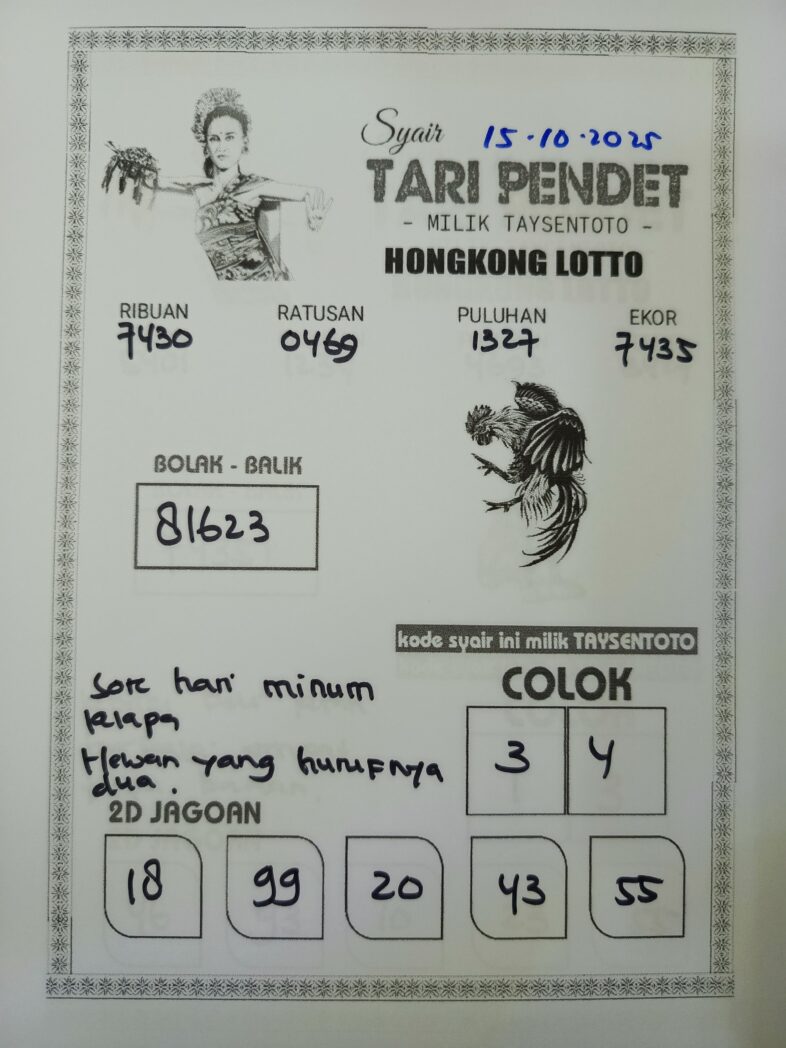Syair Tari Pendet HK Hari Rabu, 15 Oktober 2025