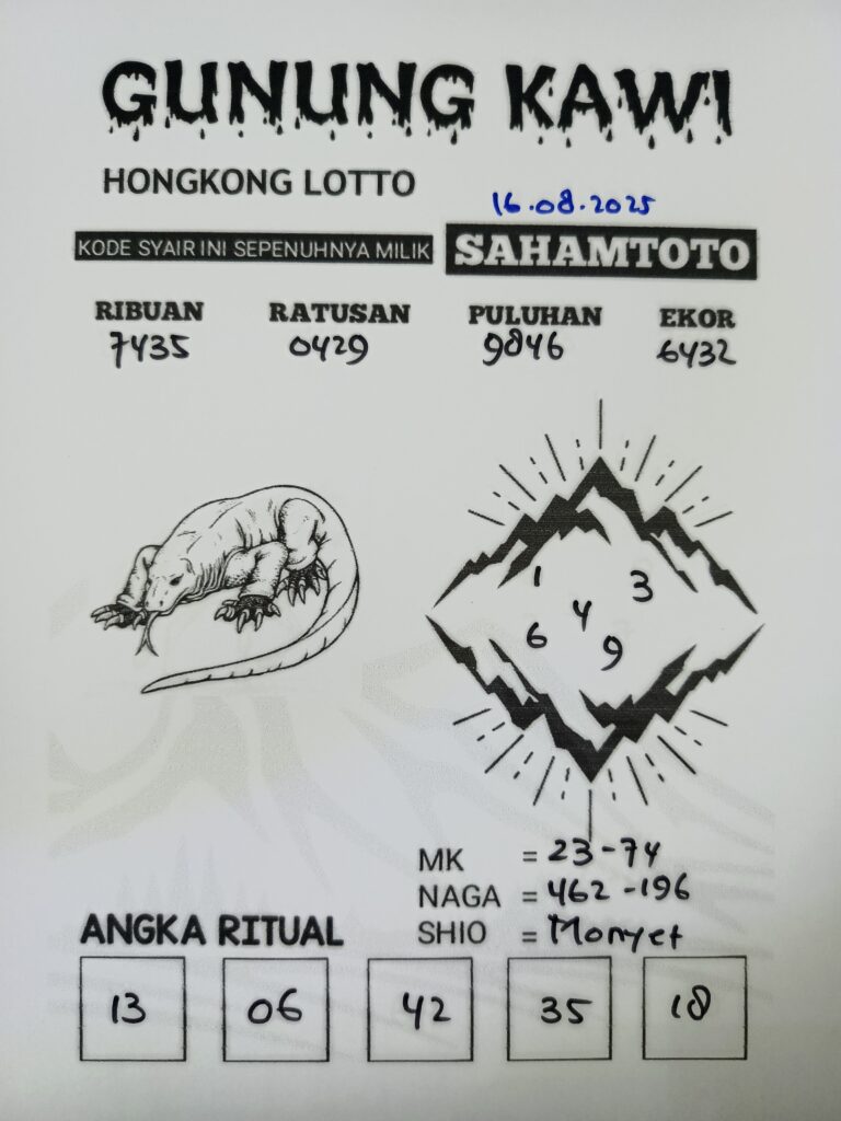 Syair Gunung Kawi Hongkong Lotto Hari ini Sabtu 16 Agustus 2025