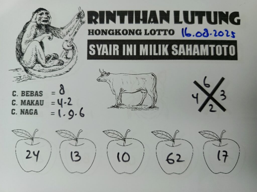 Syair Rintihan Lutung Hongkong Lotto Hari ini Sabtu 16 Agustus 2025