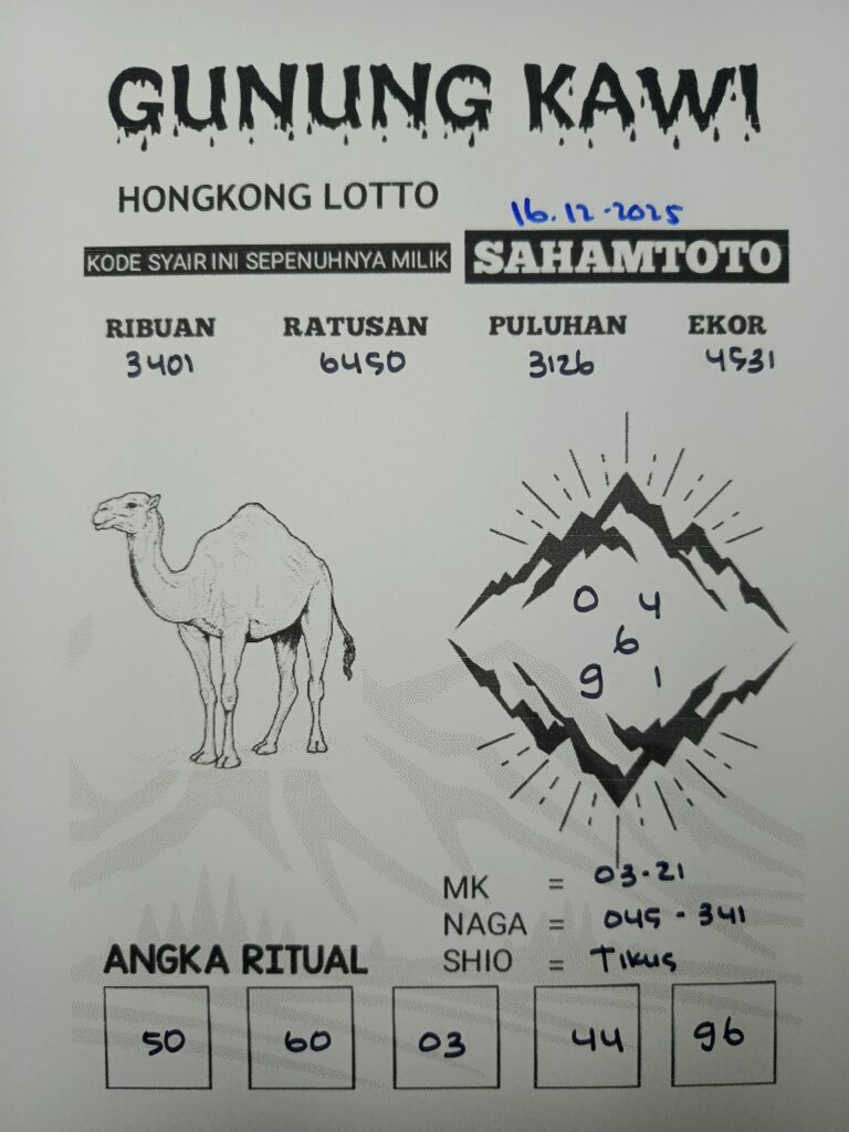 Syair Gunung Kawi Hongkong Lotto Hari ini 16 Desember 2025