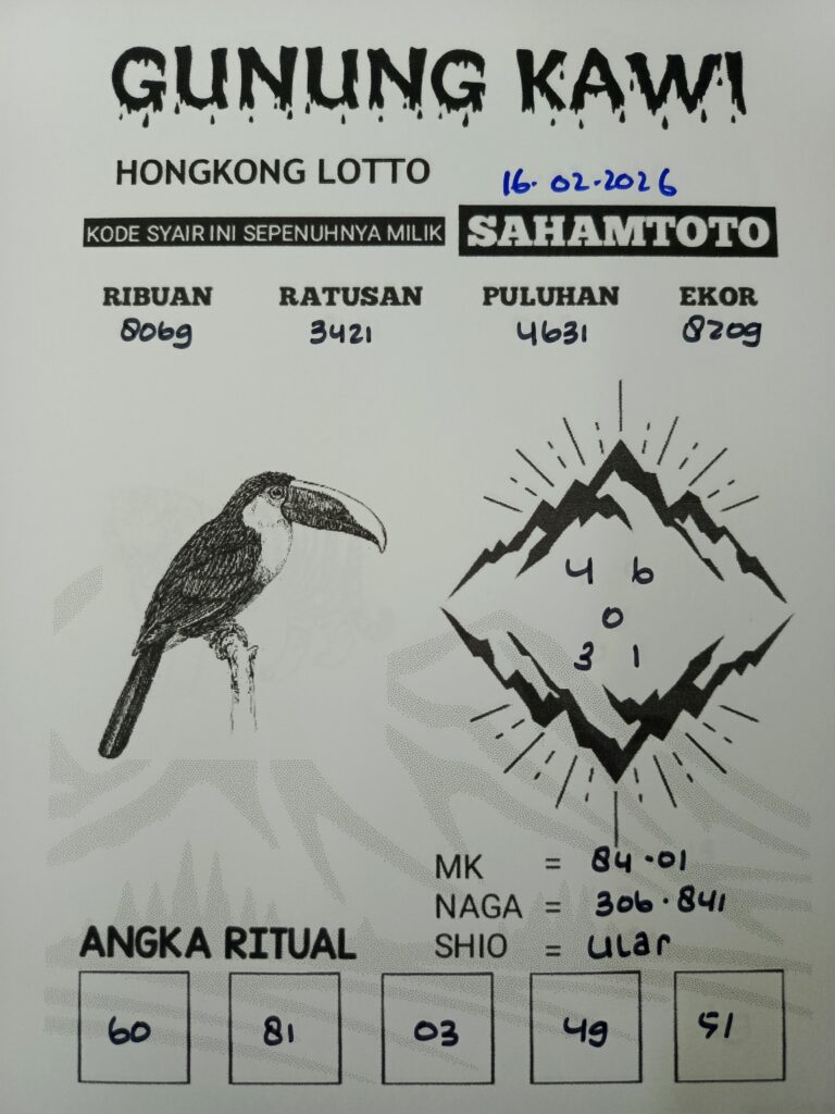 Syair Gunung Kawi Hongkong Lotto Hari ini Senin 16 Februari 2026