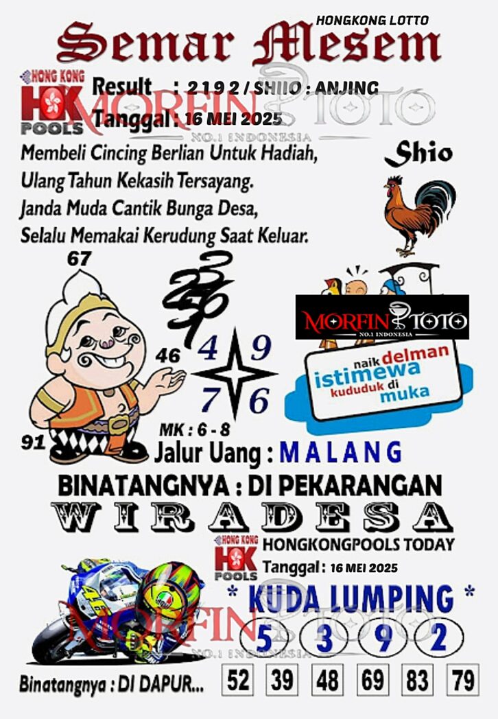 SYAIR TOGEL SEMAR MESEM HONGKONG LOTTO 16 MEI 2025