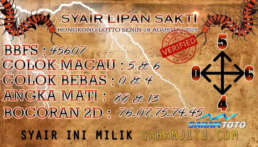 Syair Lipan Sakti Hongkong Lotto Hari ini Senin 18 Agustus 2025