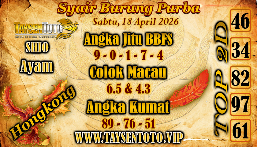 Syair Burung Purba Hongkong Hari Sabtu, 18 April 2026