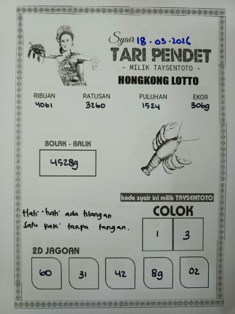 Syair Tari Pendet HK Hari Rabu, 18 Maret 2026