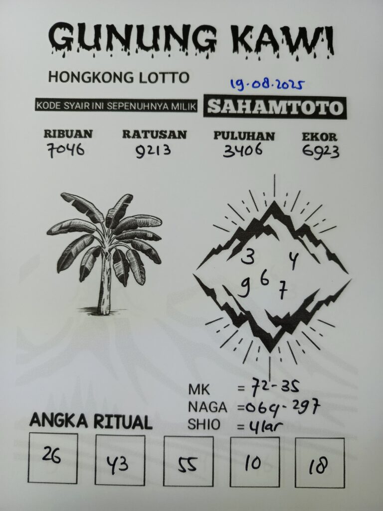 Syair Gunung Kawi Hongkong Lotto Hari ini Selasa 19 Agustus 2025