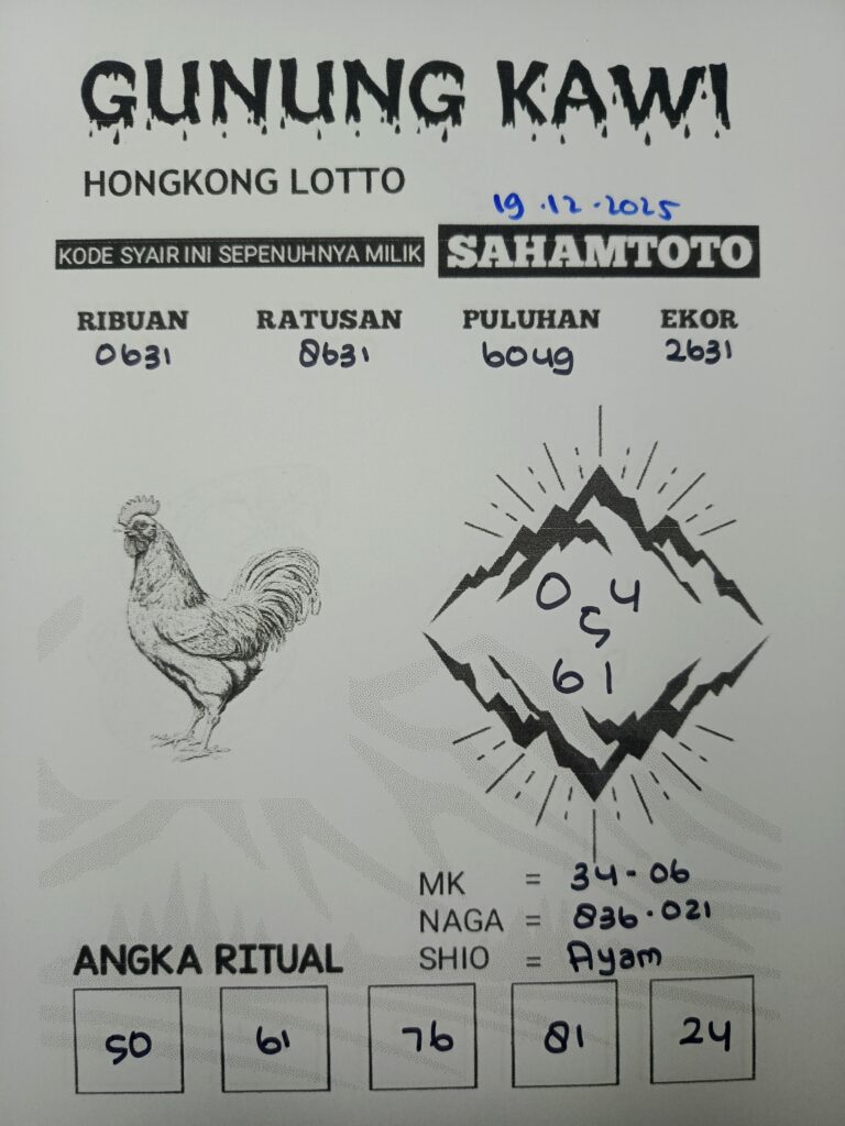 Syair Gunung Kawi Hongkong Lotto Hari ini 19 Desember 2025