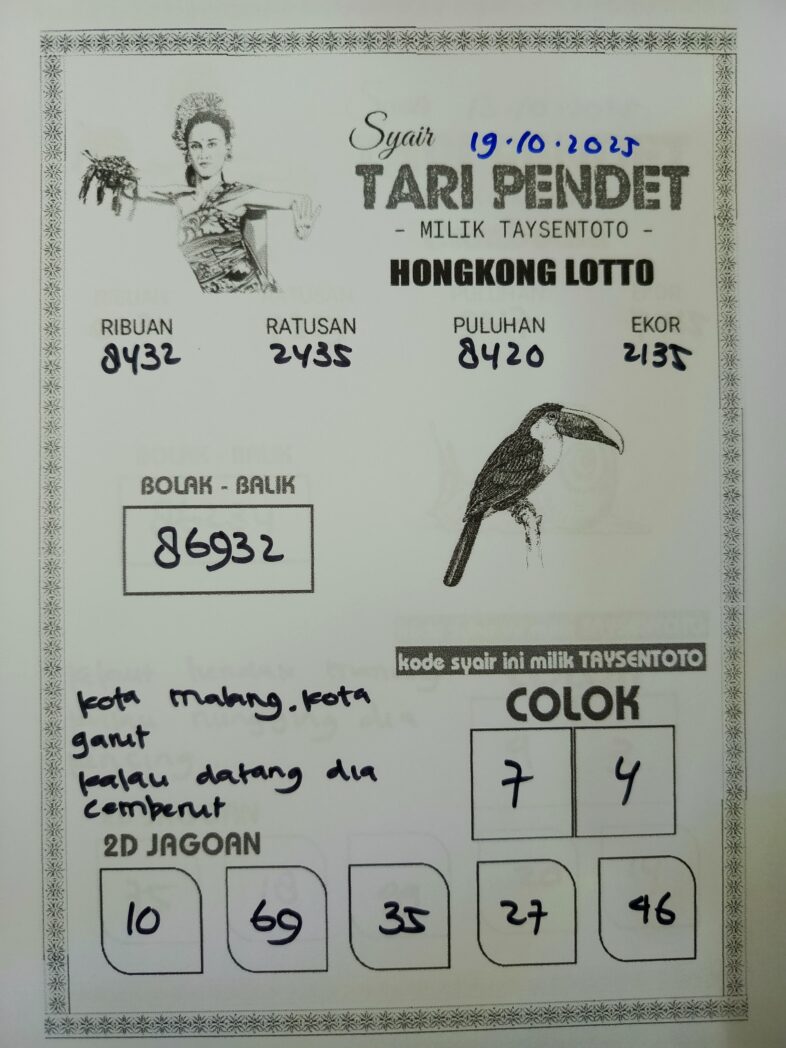 Syair Tari Pendet HK Hari Minggu, 19 Oktober 2025