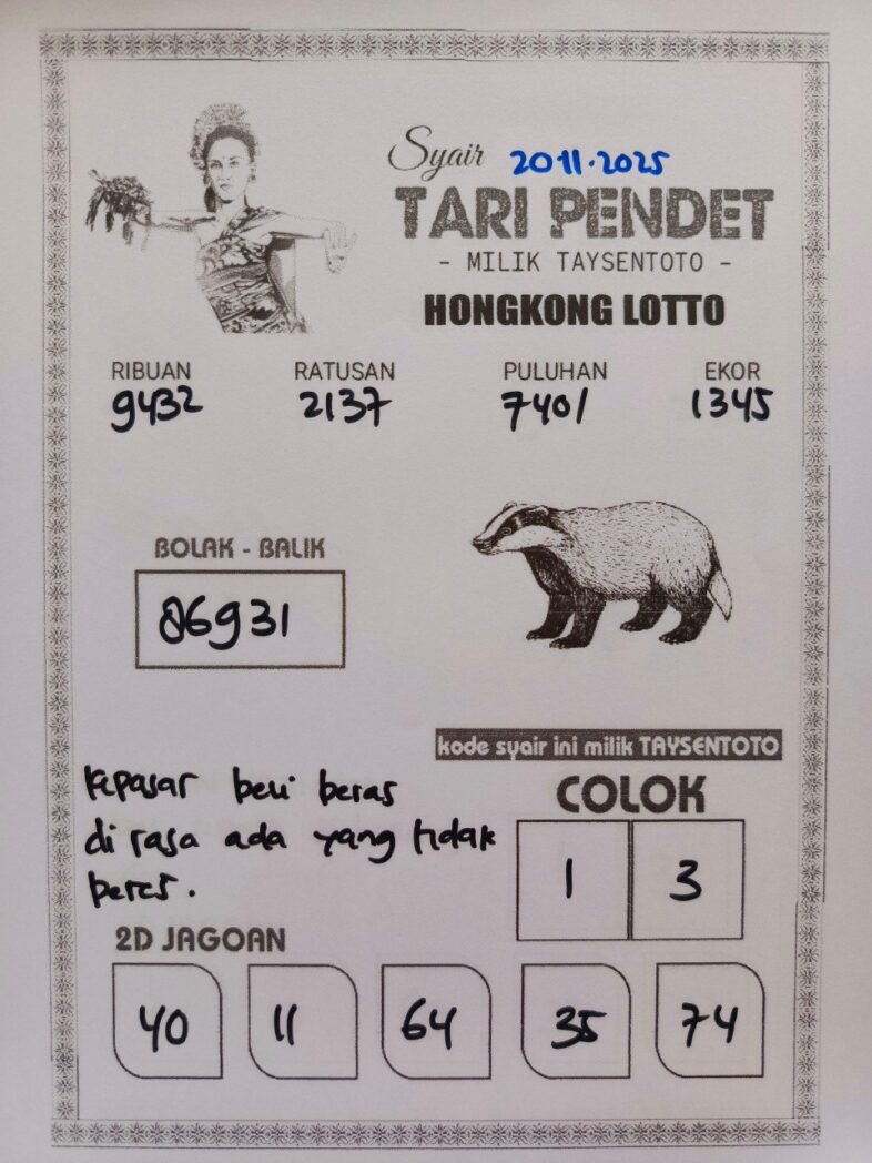 Syair Tari Pendet HK Hari Kamis, 20 November 2025