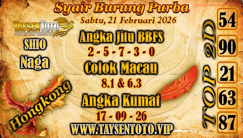 Syair Burung Purba HK Hari Sabtu, 21 Februari 2026