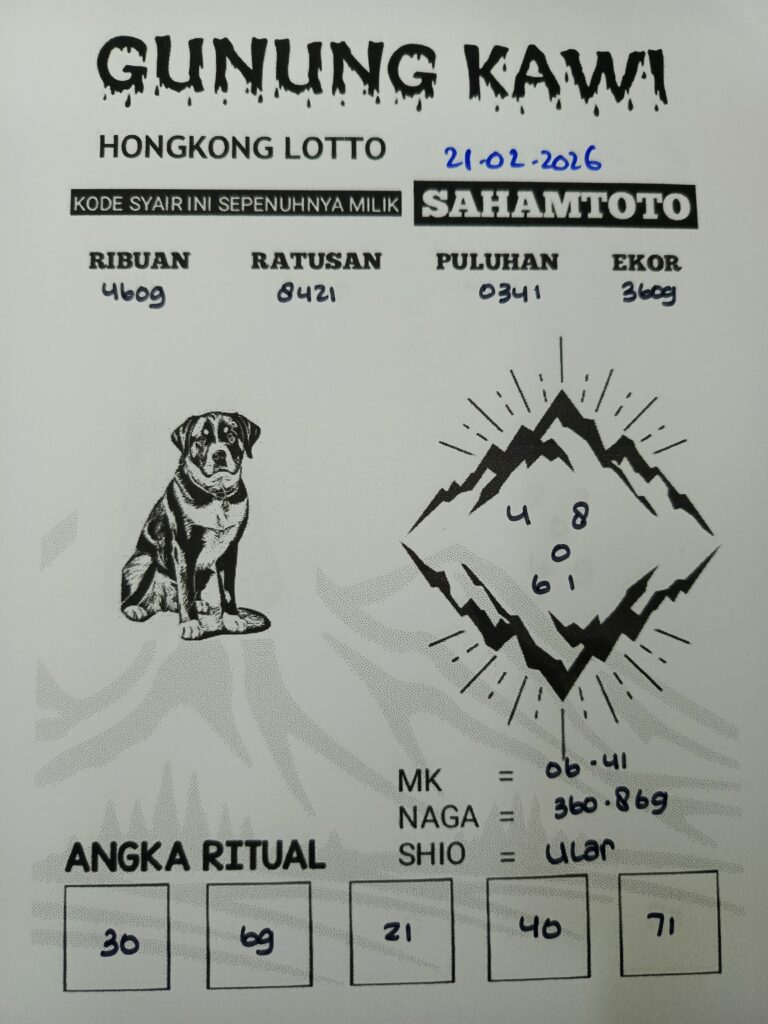 Syair Gunung Kawi Hongkong Lotto Hari ini Sabtu 21 Februari 2026