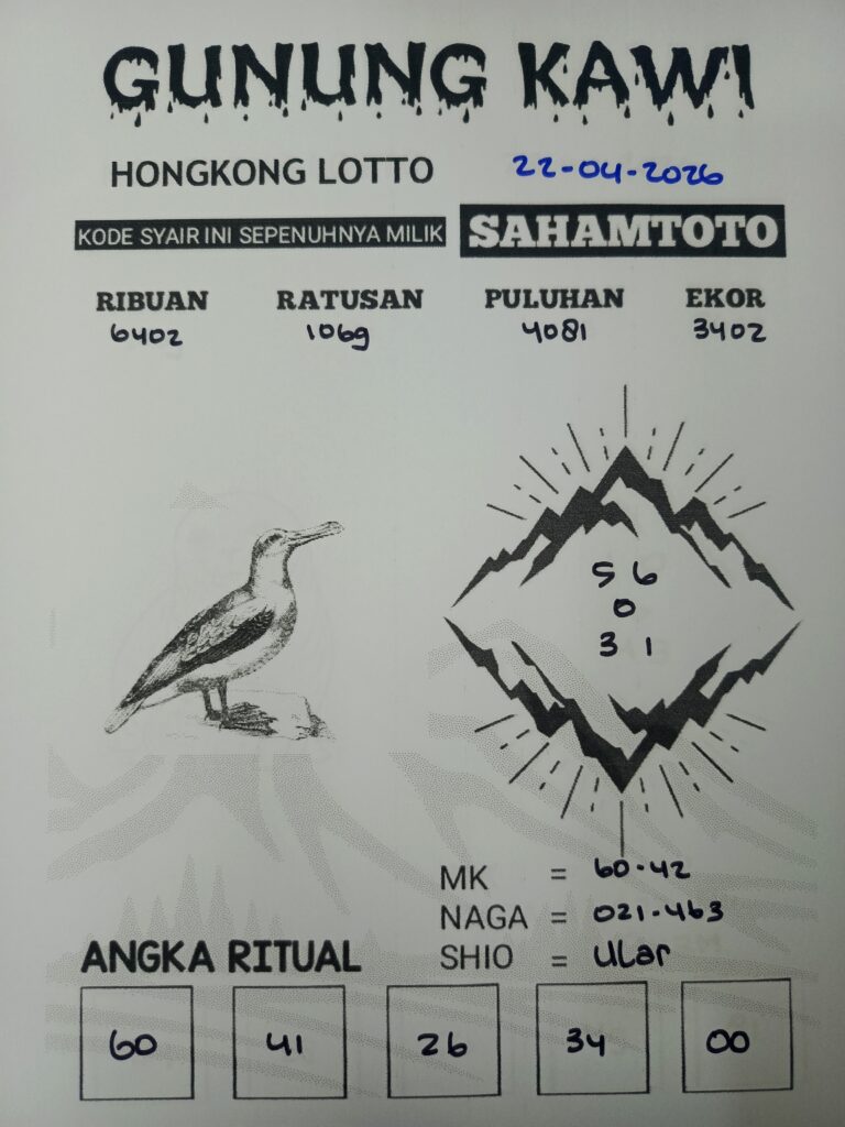 Syair Gunung Kawi HONGKONG LOTTO Hari ini rabu, 22 April 2026