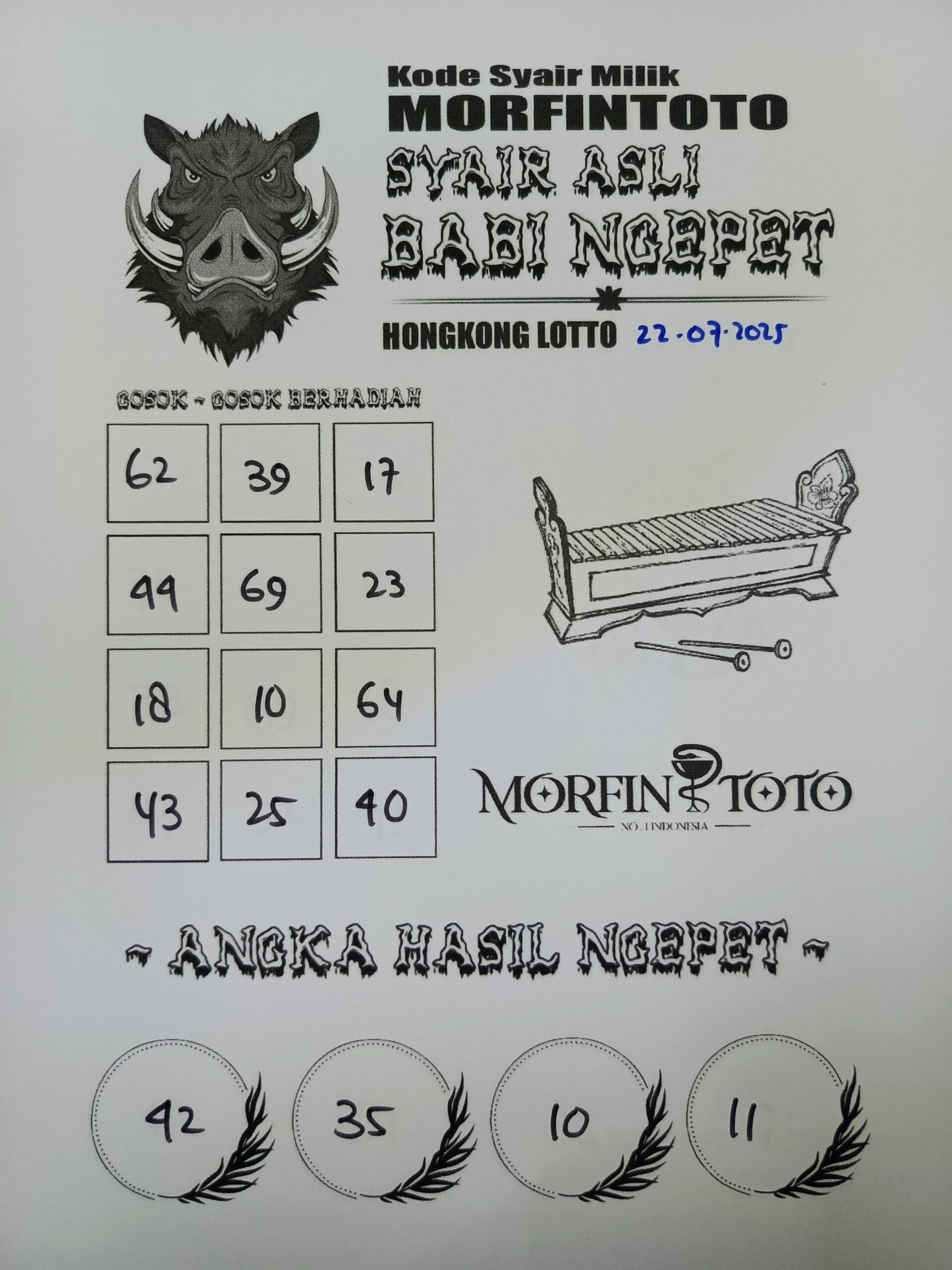 SYAIR TOGEL BABI NGEPET HONGKONG LOTTO 22 JULI 2025